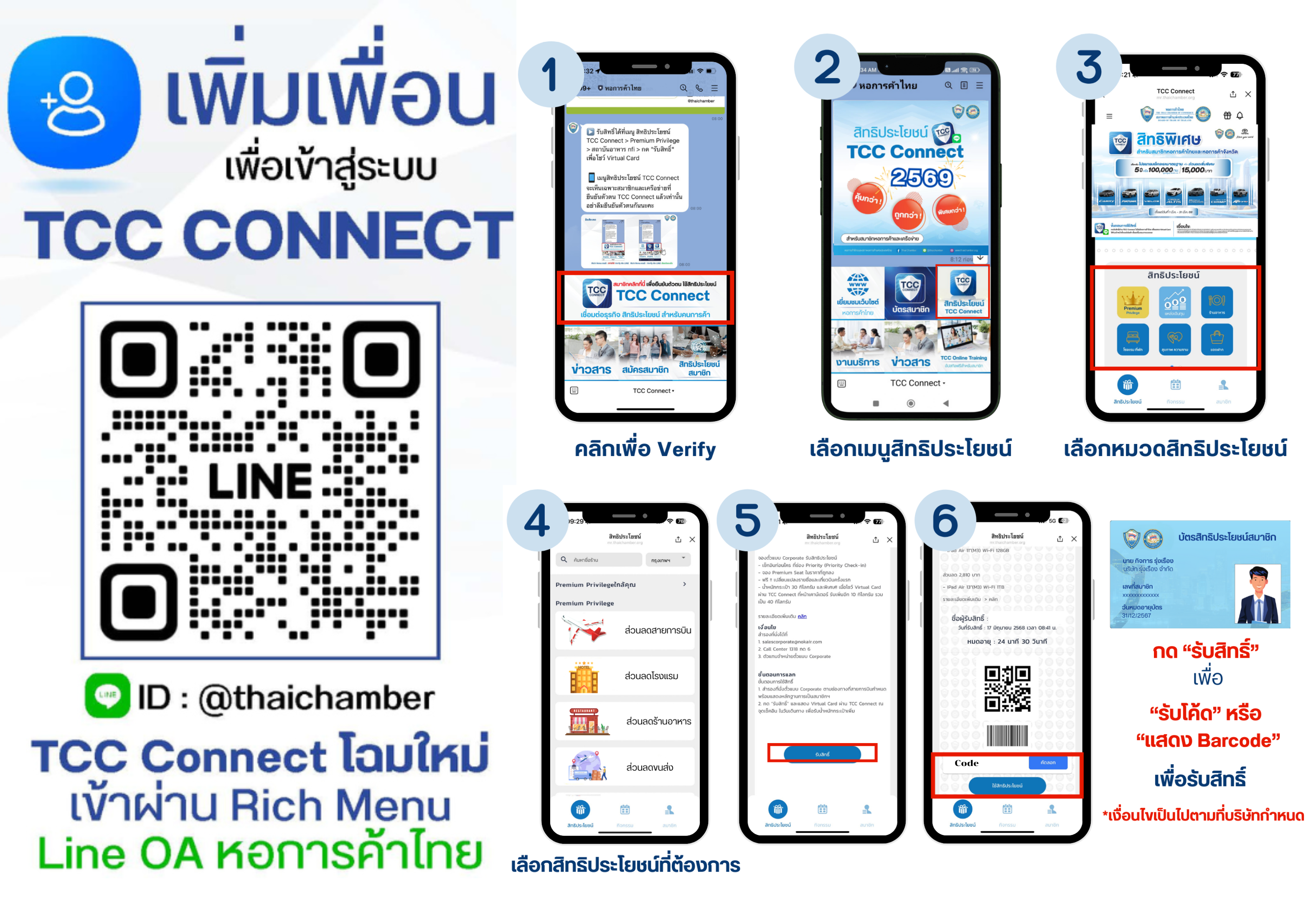 2. สมาชิกหอการค้าและครือข่าย “จะต้องแสดง Code และ  Virtual Card ผ่านTCC Connect ในไลน์หอการค้าไทย” เพื่อรับสิทธิประโยชน์ หรือ สำหรับครอบครัวของสมาชิกสามารถใช้สำเนาบัตรสมาชิก และสำเนาบัตรประชาชนของผู้ถือบัตรเซ็นต์ยืนยันการมอบอำนาจ เพื่อใช้สิทธิพิเศษดังกล่าวกับทางโรงเรียน
