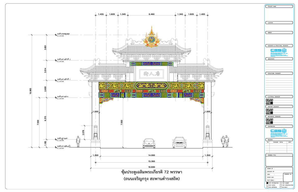 ขนาดและแบบซุ้มประตู ณ สะพานดำรงสถิต และ ห้าแยกหมอมี