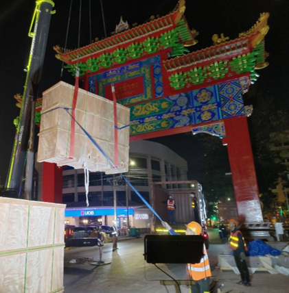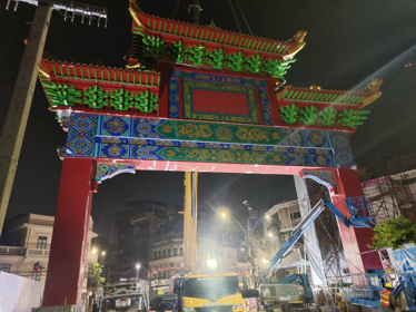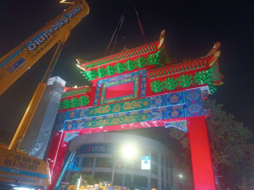 ภาพการยกยอดซุ้มประตูเฉลิมพระเกียรติ ๗๒ พรรษา ณ บริเวณห้าแยกหมอมี