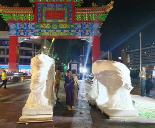 เมื่อวันศุกร์ที่ ๒๐ ธันวาคม พ.ศ.๒๕๖๗ เวลา ๒๒.๐๐ น. คุณหญิงณัฐิกา วัธนเวคิน อังอุบลกุล และ เครือข่ายสหพันธ์สมาคมสตรีนักธุรกิจและวิชาชีพแห่งประเทศไทยในพระบรมราชินูปถัมภ์ ได้ร่วมพิธีการยกหินฮั่นไป๋หวี่ (หินอ่อนหยกสีขาว) จากประเทศจีน ซึ่งได้แกะสลักรูปช้าง สิงโต และกลอง เพื่อประดิษฐานที่เสาซุ้มประตูเฉลิมพระเกียรติ ณ ซุ้มประตูวชิรธำรง (แยกหมอมี)