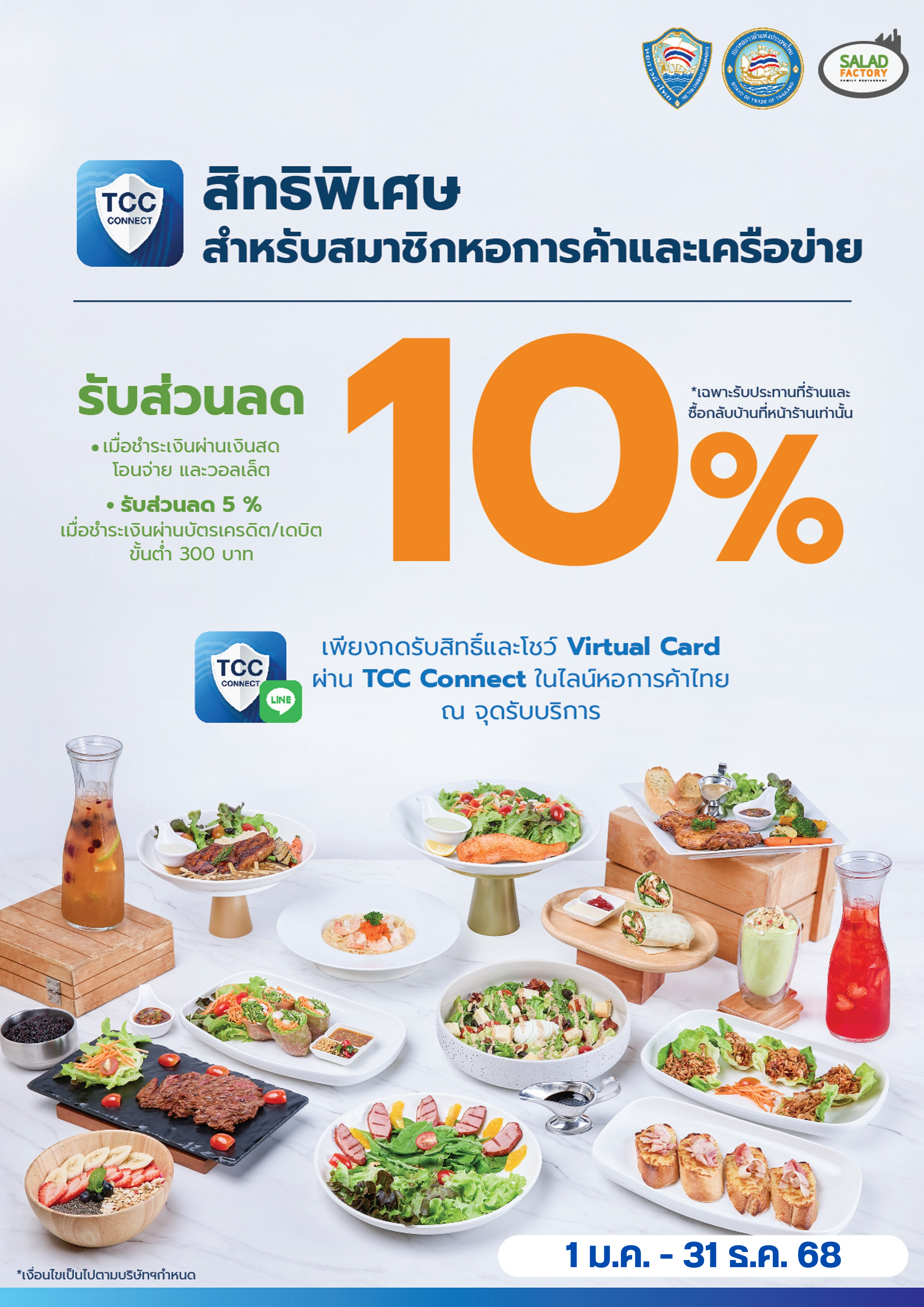 โชว์บัตรสมาชิก Virtual Card ผ่าน TCC Connect ในไลน์หอการค้าไทย ให้กับเจ้าหน้าที่ Salad Factory ประจำสาขาที่ไปใช้บริการ