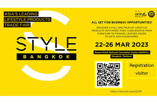 กรมส่งเสริมการค้าระหว่างประเทศ ร่วมกับสภาหอการค้าแห่งประเทศไทยดำเนินการจัดงานแสดงสินค้า STYLE Bangkok 2023 ที่สุดของงานแฟร์ที่รวมสินค้าไลฟ์สไตล์แบบครบวงจรจากผู้แสดงสินค้ากว่า 1,000 คูหา ตื่นตาไปกับสินค้าดีไซน์ใหม่ล่าสุด เฟอร์นิเจอร์ แฟชั่น เครื่องหนัง ของขวัญ และของตกแต่งบ้าน ฯลฯ